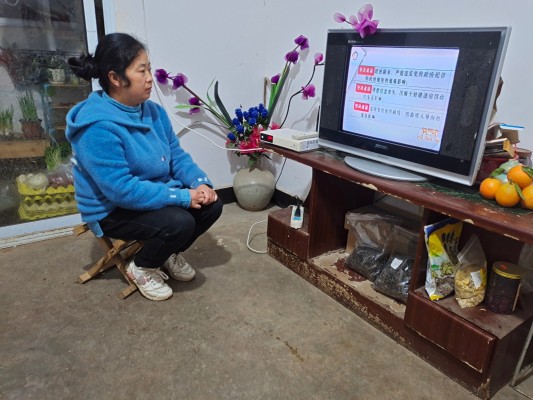临翔区博尚镇纪委书记段玉美在家中收看反腐警示专题片《清流毒-云南在行动》第三集 。