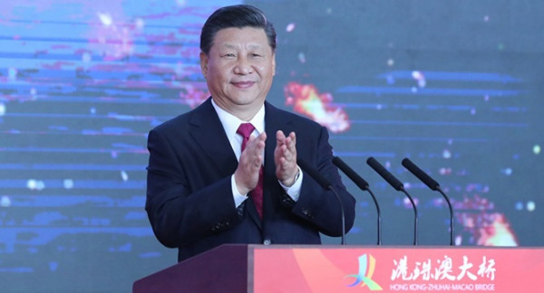 10月23日上午,港珠澳大桥开通仪式在珠海市举行。中共中央总书记、国家主席、中央军委主席习近平出席仪式,宣布大桥正式开通并巡览大桥。