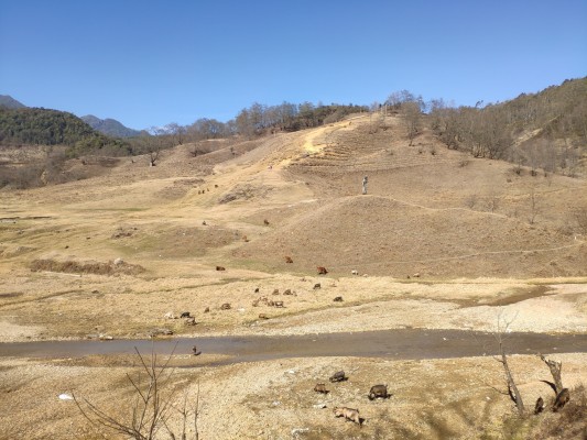 五年前的一个春天,一次偶然的机会,我从郭大寨老家赶回南伞上班途经永德县乌木龙乡时“误入”了一座美丽的山谷,附近村民叫它“情人谷”,见到这座山谷的第一眼我便深深的沦陷了,广袤无垠的山峰,山坡上成片的草地,山脚的涓涓河流……,互相交映出一幅用我拙劣的摄影技术难以记录的画面,瞬时驱散身心疲意,让我久久不愿离去。