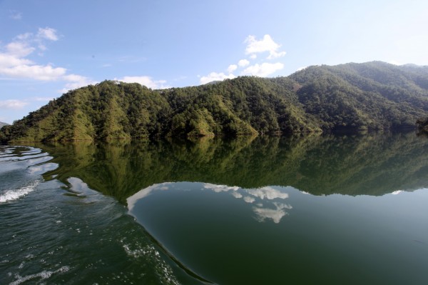 船行江中,青山碧水相映,蓝天白云相随,有时百鸟林间齐飞,有时猿猴断崖惊鸣,使人流连忘返。(江宏峰)