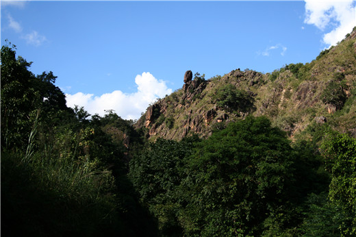 “望江石郎”位于双江县城南部10公里处的小黑江上游河畔。因河畔山巅有一奇石而冠名,又称“望夫石”、“将军石”,它高踞于峭壁之上,石高5米,周长约12米,成不规则的椭圆形,小头朝下斜支于另一块山石上,给人以摇摇欲坠之感。从南面看犹如一位威武的将军守望着富庶的勐勐坝;从北面看又犹如一位哀伤的恋人低头沉吟。传说那是一对被拆散的恋人,女的跳下悬崖在河中化为形似美人的巨石,男的忧伤过度变成了望江石郎,二人在绵绵遗恨中永远互相凝望…… (江宏峰 )
