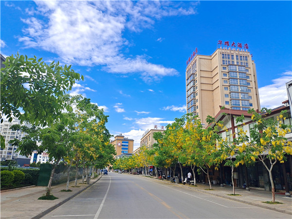 目前,双江在鲜花城市建设中,用“仙人肠子花”绿化了部分市政道路和公共活动场所,形成了一道道独特的风景线。( 江宏峰)