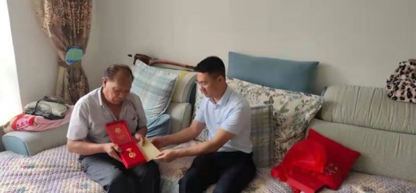 接过纪念章,退休老党员魏雍德同志边抚摸边说道:“1958年的9月1日,那是我加入中国共产党的日子,也是我永生难忘的一天,今年是我入党的第63年了,我亲眼见证着、感受着祖国的翻天覆地变化,日子越过越好,祖国越来越繁荣昌盛,事实充分验证了没有共产党就没有新中国......”