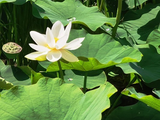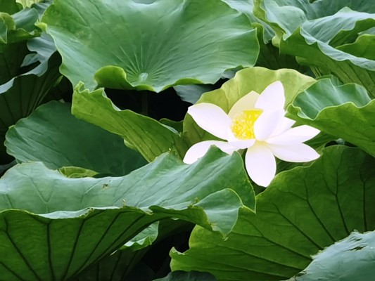 大美七月,荷花池里的荷花开得分外惹人爱,瞧,一朵朵荷花莹莹雪白,独秀一隅。清风徐徐,荷韵幽幽,几度丰姿恰出水,一袭纯洁不玷泥!人们喜爱荷花,正是它“出淤泥而不染、濯清莲而不妖”的品质吧。(杨成菊摄)
