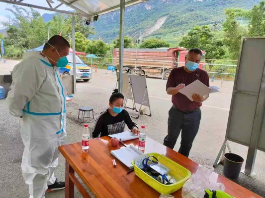 到贺派乡卡点对亮码、测温、登记情况进行检查
