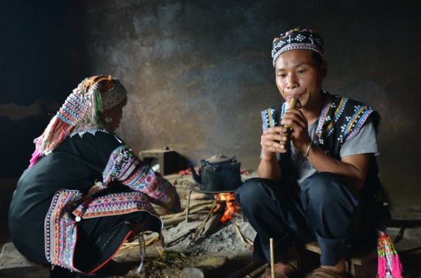 “咧肚”“咧别”是拉祜族古老的民间传统乐器,双江县小户赛、南迫等地的拉祜族会制作吹奏。一般是拉祜族男子外出劳作、打错或放牧时,闲暇之余现场取材制作而成。吹奏以排遣内心的孤独与寂寞。吹奏时轻悠孤咽、淡淡萦绕,更增加了吹奏者宛如顾影凄自怜的情感。( 江宏峰)