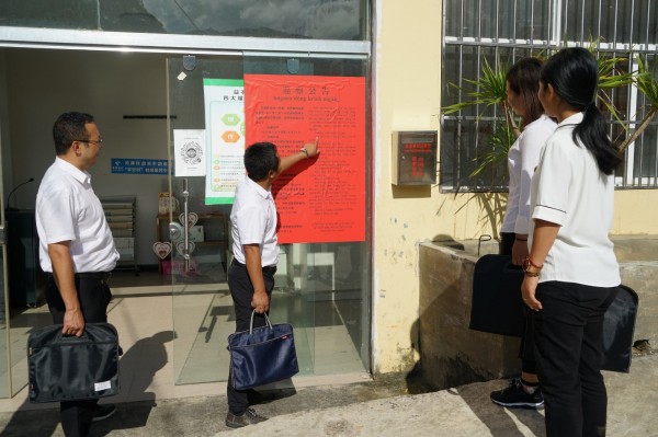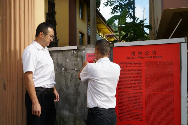 张贴“佤汉”双语版巡察公告悬挂举报箱