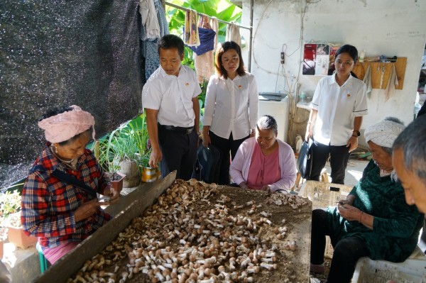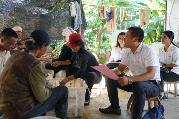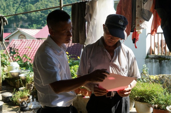 向少数民族群众讲解“佤汉”双语版宣传单