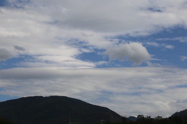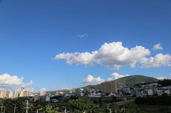 云是很有特色的。有时候,连绵不断的镶着金边或银边的云层在翻动;有时候,长空万里,只浮现一朵一尘不染的白莲;有时候,在柔和的天空背景上有云和闪闪发光的彩虹相伴,美不胜收。有时云轻如棉,有时又重如水晶巨石。(周月)