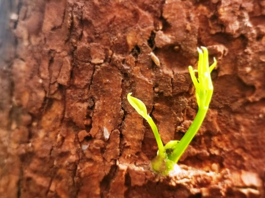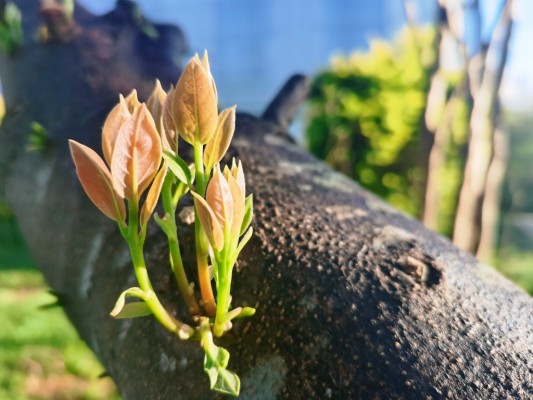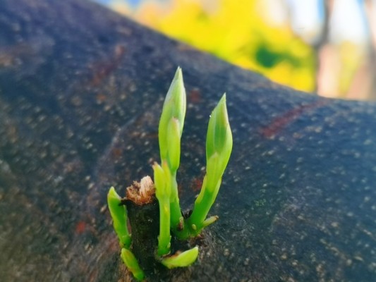 岁月更迭,四季轮回,秋天,悄悄的来又静静的走了,片片秋叶舞动着希望,花瓣一地,落入尘埃。你可知:落红不是无情物,化作春泥更护花!瞧,新枝抽芽,不畏严寒,生机盎然!冬天来了,春天还会远吗?(杨成菊 摄)