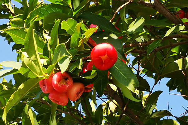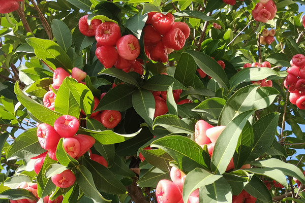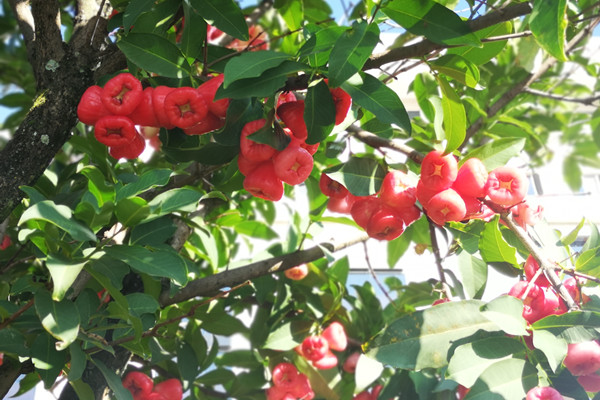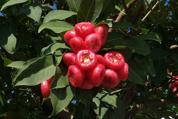 冬日的莲雾,红艳艳的果实晶莹剔透,像一串串红灯笼挂在绿叶间,无声地点亮了萧瑟的冬景。莲雾是高产的水果,只要水肥充足,不分春夏秋冬,一年可挂果六七次,为果农钱袋子默默做着贡献。这不就是我们纪检人的写照么?无声在万千绿叶间亮起警示的红灯,为人民的钱袋子和幸福日子做着应有贡献。莲雾是美的,内外皆美,它们值得被记录。(业远航)