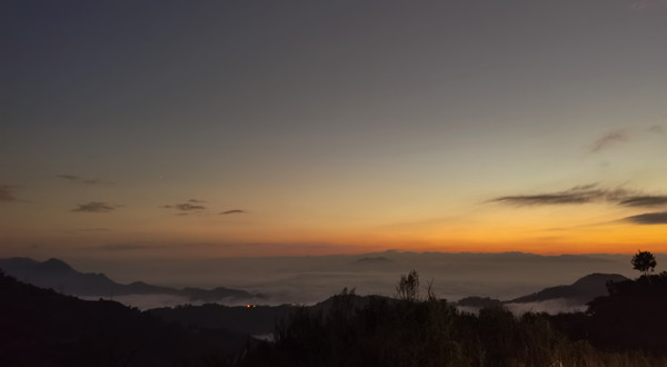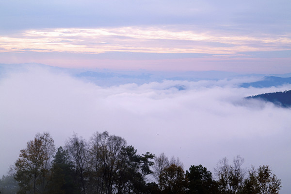 我时常在想,一场盛大的冬应该是白茫又灿烂,沉静又热烈的,是有层次感、耐人寻味、难以忘怀的。选了一个雨后的晴天早晨,天灰蒙蒙时便早起。站在山腰,微风一吹,她轻轻地飘,越来越远,只见她摇曳舞动,一会儿便蜷缩成团,融入了云的海洋,再也分辨不出来了。