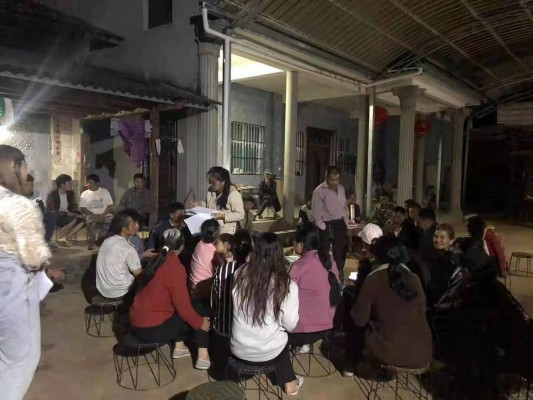 以自然村为单元,召开群众会,宣传疫情防控政策,动员群众接种新冠肺炎疫苗。