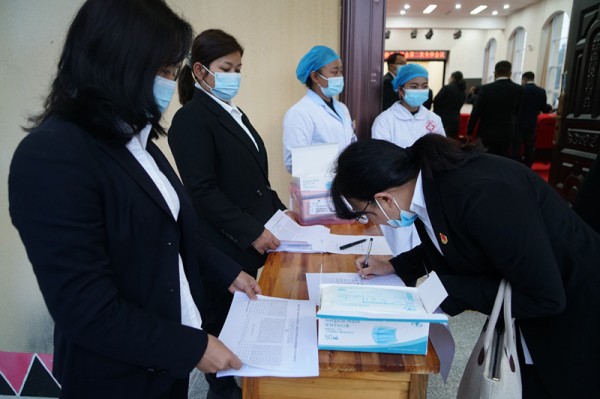 在签到处,工作人员有条不紊引导参会人员完成报到程序。