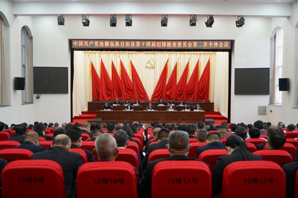中国共产党沧源佤族自治县第十四届纪律检查委员会第二次全体会议现场。