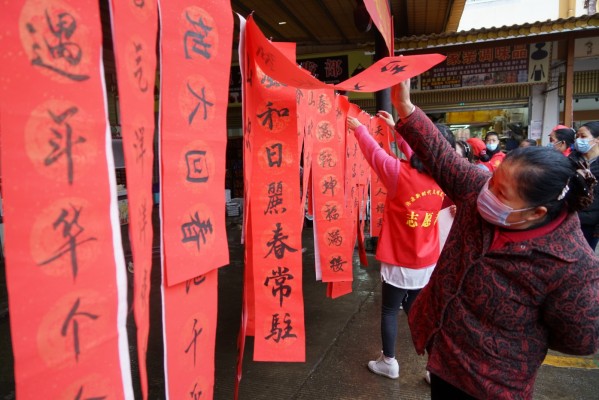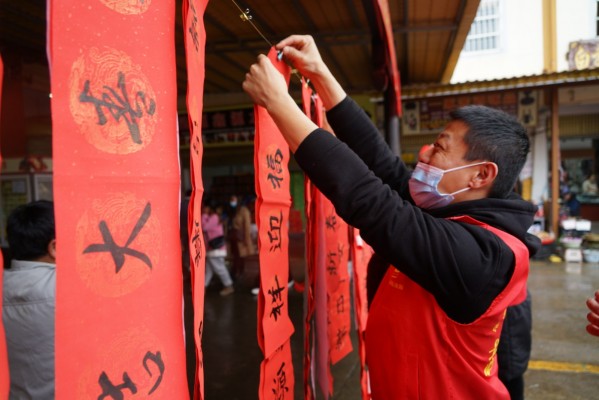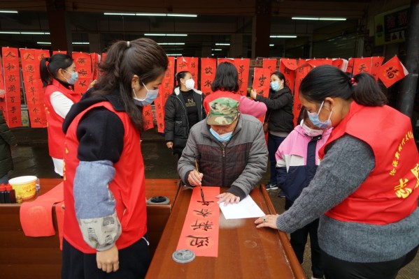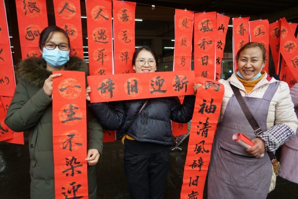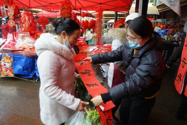 纪检监察干部为群众送上一幅幅充满浓浓祝福的春联。
