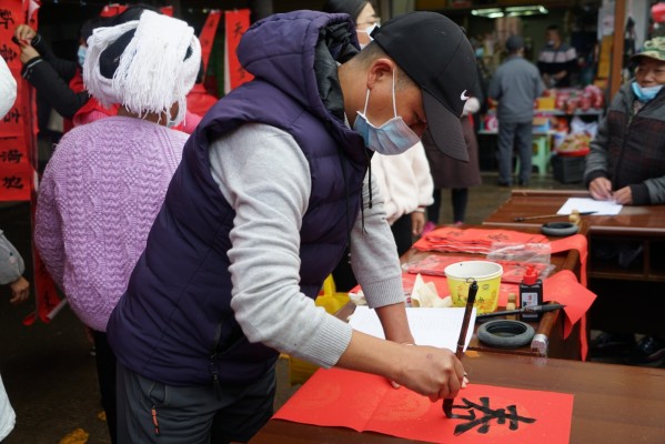 书法爱好者现场挥毫泼墨,为群众送去最温暖的新春祝福。