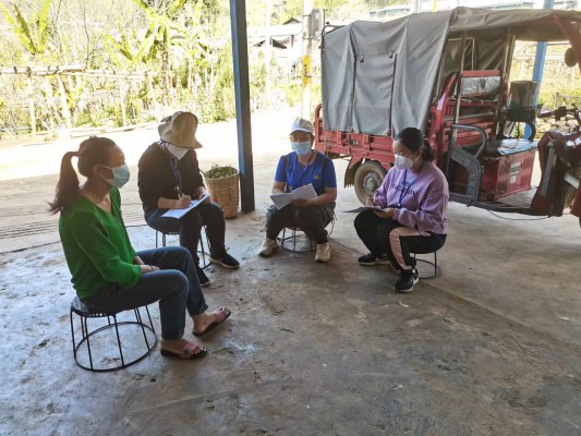 纪检监察干部在孟定镇山头寨村岔路寨组进村入户开展核查工作。