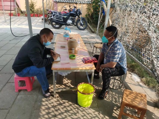 图为监督检查组深入孟定镇大水井村委会围绕人员到岗情况、责任落实情况等进行监督检查。