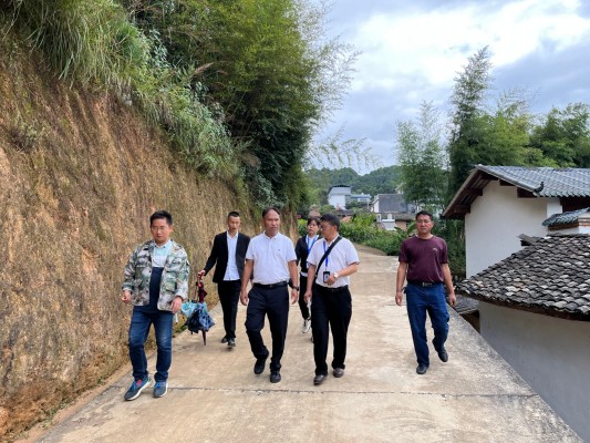 图为监督检查组查看茶房乡村头村生活污水处理情况