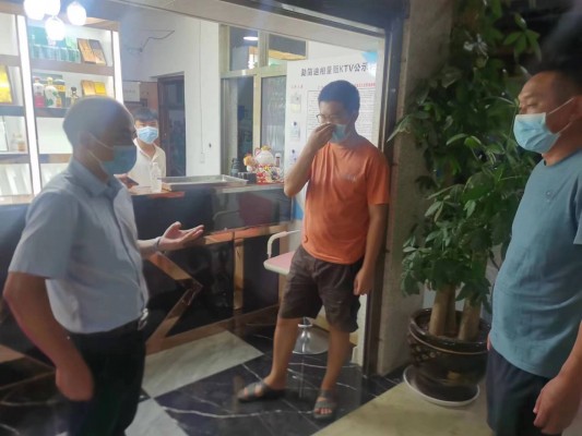 勐简乡纪委对辖区娱乐场所执行疫情防控规定情况进行监督检查,拧紧防疫“安全阀”。
