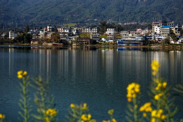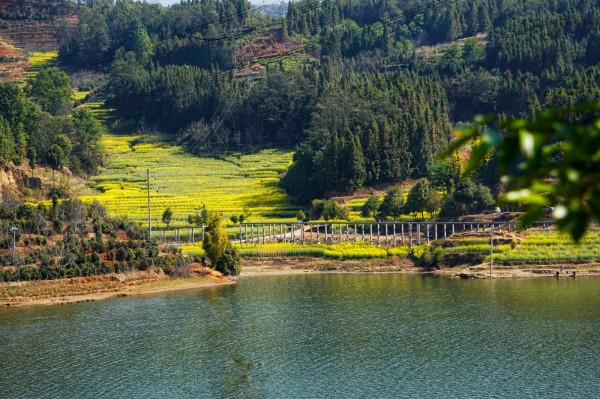 河对岸,那遍地金黄的油菜花简直就是一场金色海洋的视觉盛宴。