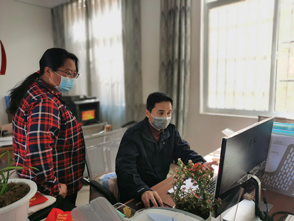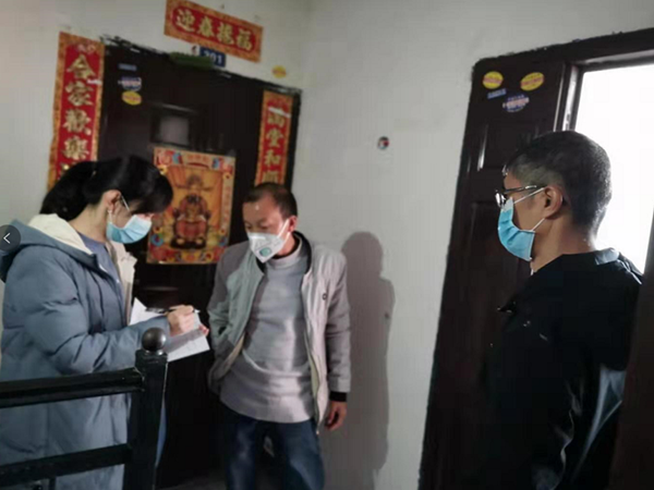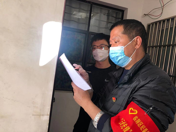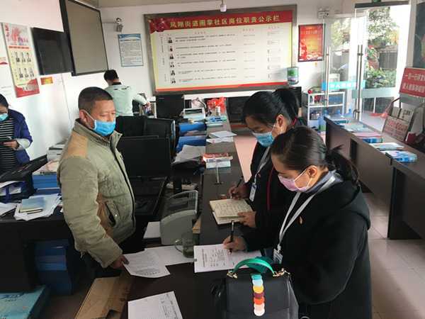 凤翔街道纪工委到圈掌社区,对社区工作者的在岗情况进行实地督查,对工作开展情况进行记录。(姜磊/摄)
