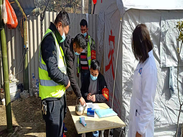 临翔区纪检监察干部进入办公楼前自觉接受体温检测,体温正常方可入楼工作,同时保持办公环境卫生清洁,定期喷洒大碱。(杨锦雯/摄)