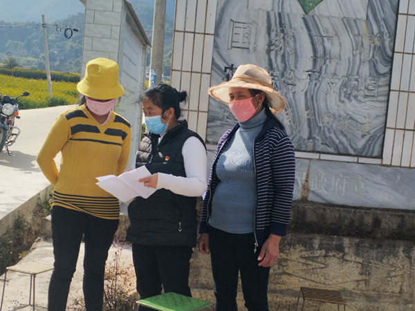 临翔区纪检监察干部挨家挨户开展入户摸排工作、发放宣传单,以确保清楚详实的掌握每一户情况。(杨锦雯/摄)