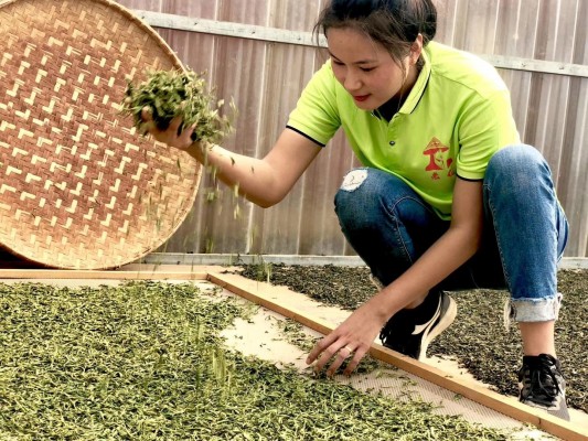 晾晒:揉捻之后把茶叶晾晒到太阳下面,使茶叶晒干,香气也随之散发出来。