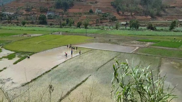 趁着天气晴朗,农户全家老少齐上阵,赶紧松土整地,把杂草薅出来,为雨季来临的播种做好准备。(景朝荣 摄)