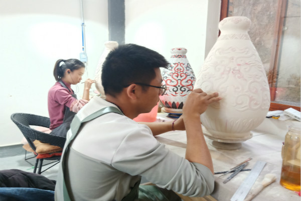 “玉不琢,不成器”。花纹在瓷胎上游走绽放,凝结着艺师的独特匠心。