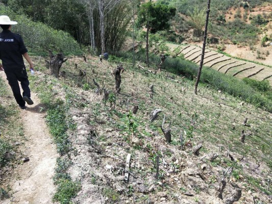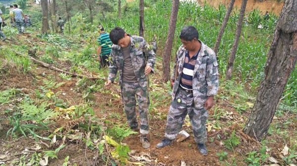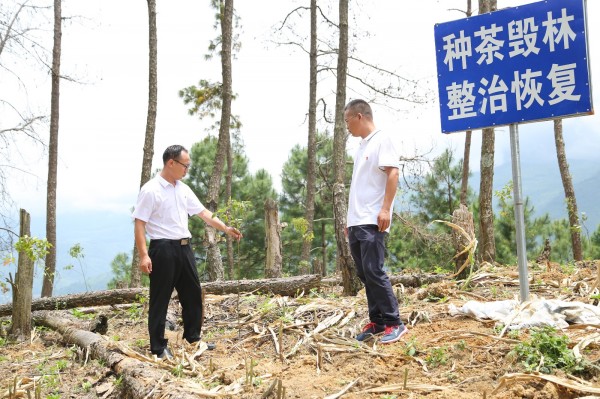 督查组深入现场查看种茶毁林情况。(穆文军 摄)