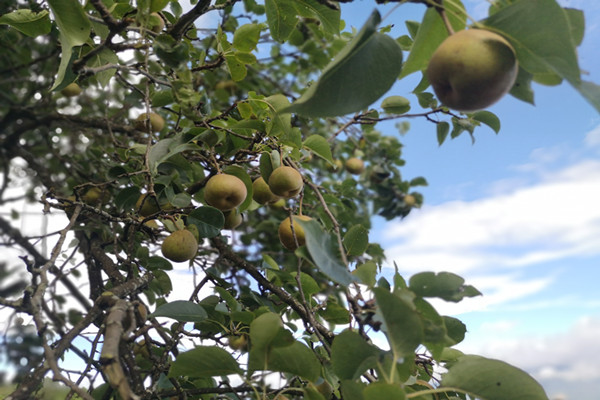 秋天的梨子挂满枝头,正在一天天黄熟,压弯了树枝,像捉迷藏的孩子露出了害羞笑脸,远远望去梨儿好似铜铃在摇,真是惹人喜爱。
