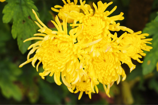 绿叶间,菊花迎风而立、欣然绽放,展现着不同寻常的美。(陈溪莲 摄)
