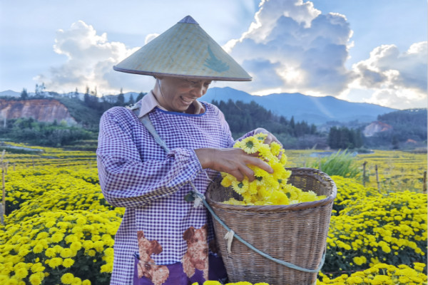 菊花是秋天为大地披上的外衣,圆满了农户们的丰收梦。(杨锦雯 摄)