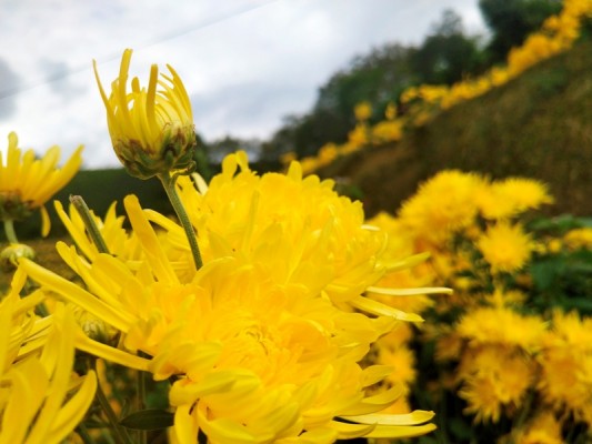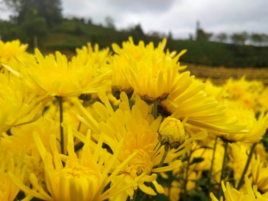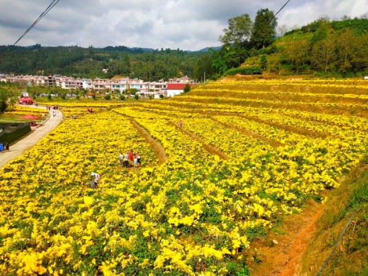 金秋时节,凤庆县凤山镇红塘村的百亩金丝皇菊开了,遍地金黄,菊园风光刷屏了朋友圈。黄色的花蕊一起组成独特的风景,不与群花争芬芳,不与众花争宠爱,从骨子里透出一种清高、雅致,把整个秋天妆点得异常绚丽。红塘村是中山大学定点扶贫点,菊花产业的发展不仅让民众有领略了菊花的美,也充实了当地群众的“钱袋子”。(杨成菊摄)