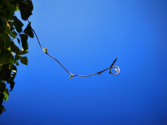 湛蓝的天空下,豆角儿肆意的张开了它的触角,使劲拥抱世界。