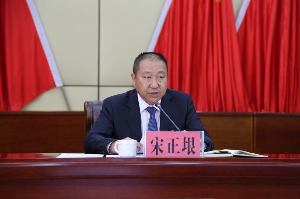 在第一次全体会议上,县委书记宋正垠同志讲话。