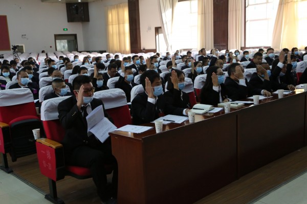 参会人员认真聆听县委书记宋正垠同志讲话。