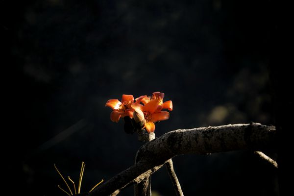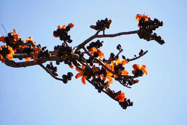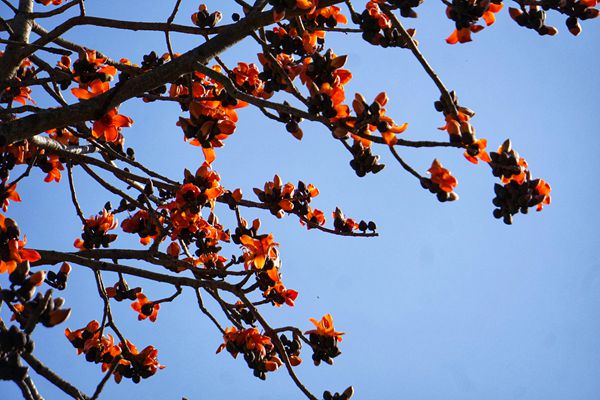 轻风从树梢拂过,橙红的花朵从不摇曳,从不顾盼,心无旁骛。