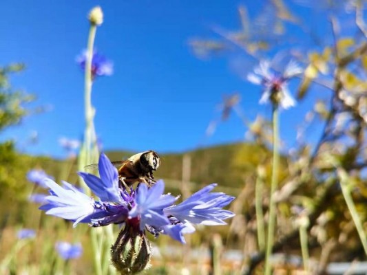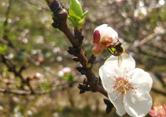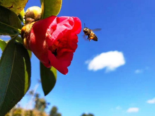 冬去春来,春暖花开,到处可见小蜜蜂忙碌的身影,仿佛在说:撸起袖子加油干哪,幸福是靠奋斗出来的!古往今来,蜜蜂都是勤劳、智慧的象征,别看它弱小,浑身上下都充满了正能量!(杨成菊摄)