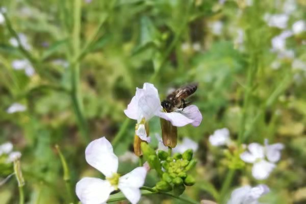 不要惊扰这只忙碌的小蜜蜂,它正在传递春天的甜蜜。(陈溪莲/摄)