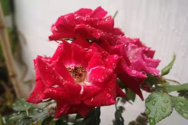 经过雨水的洗礼,红色的花瓣更显娇艳。(陈溪莲/摄)